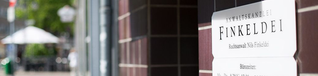 Die Anwaltskanzlei Finkeldei hat ihren Sitz auf der Gladbecker Straße 29 in 46236 Bottrop; am Eingang der “Gastromeile” zwischen der Glückauf-Apotheke und dem griechischen Restaurant “Pikilia”. Parkplätze befinden sich in der Umgebung.